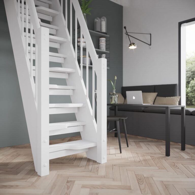 Spartrappan är mindre brant och har stigande räcke vilket är ett säkerhetsmässigt bättre alternativ, men när detta inte är möjligt kan vi även erbjuda loftstegar med handledaren monterad direkt på vangstycket.