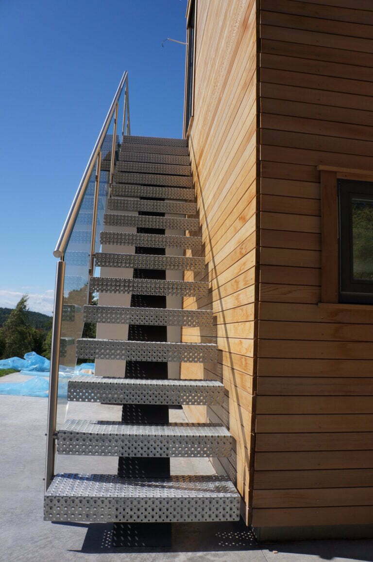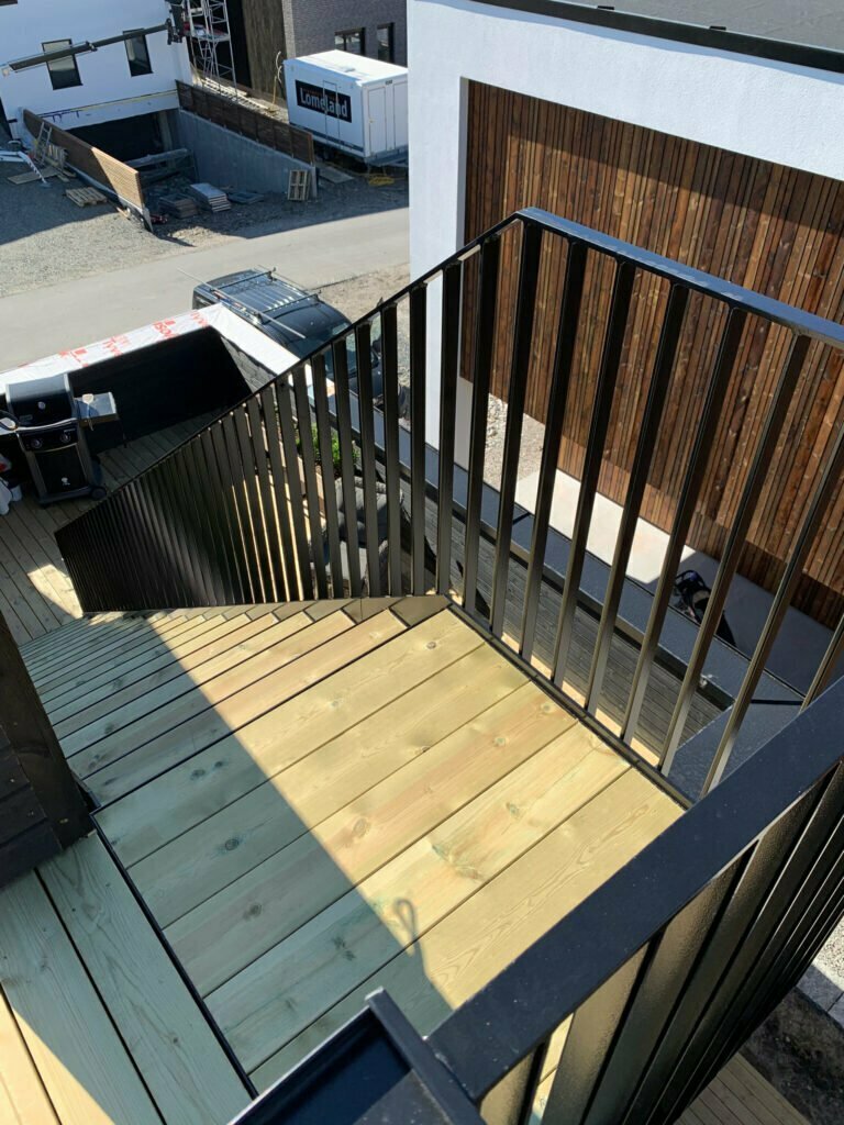 Ståltrapporna är varmförzinkade vilket innebär att materialet doppas i varm, flytande zink. Detta ger ett mycket starkt skydd mot korrosion. Våra utomhustrappor i trä är djupimpregnerade med en giftfri och miljövänlig linolja, denna behandling kan öka livslängden på virket upp till 10 år längre än obehandlad furu.