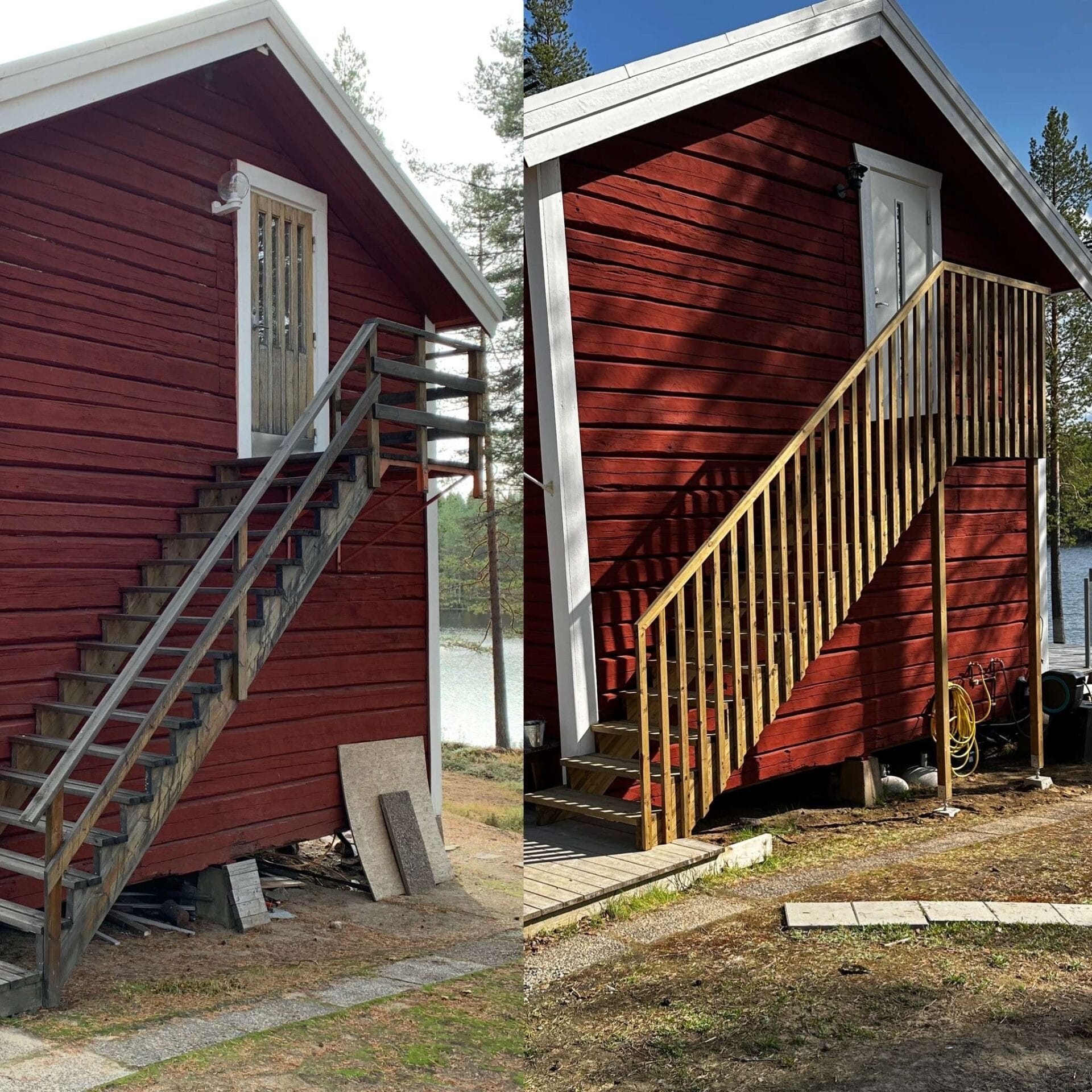 Våra utomhustrappor tillverkas av norrländsk furu och behandlas med Linax, en ytbehandling som ger en djup impregnering med kopparbaserat medel och varm linolja under vakuum. Detta minskar risken för sprickbildning och ger utmärkt formstabilitet. Trapporna finns i brun (Linax Brun) och grå (Linax Grå) samt i naturell olja (Linax Natur) som blir vädergrå med tiden.